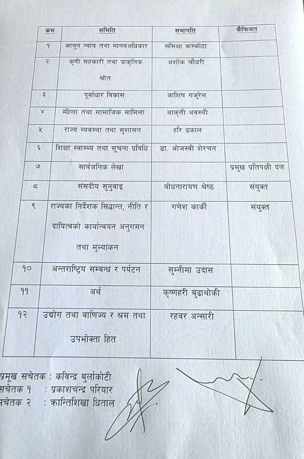 त्यस्तै, बैठकले सचेतकमा प्रकाशचन्द्र परियार र क्रान्तिशिखा धिताललाई चयन गर्ने निर्णय गरेको छ ।